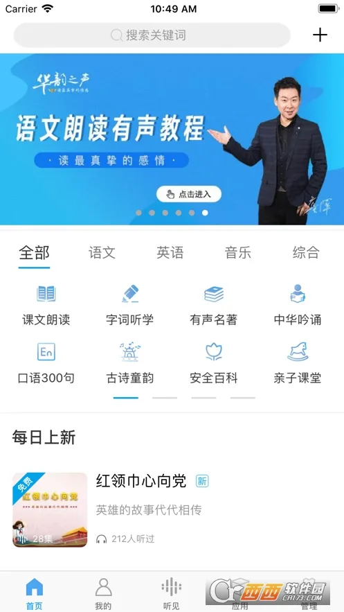 听见时代app是一款超棒的音频学习平台。它功能强大,能满足学生多样需求。有丰富多彩的音频资源专区,像经典古诗文示范朗读、安全故事等啥都有。每天更新听单资源,天天都有新惊喜。提供多个出版社的同步教材资源,涵盖小学不同年级,从三年级到五年级,每本教材都有清晰易懂的音频目录列表,附带同步音频,找内容超方便。还汇集众多中外名著,能通过声音重温经典。软件操作简单,能轻松切换播放列表、暂停音频、收藏喜欢的内容、分享音频和感受,通过首页搜索功能还能快速找到各种声音资源。不管是想提升语文素养,还是拓展文学知识,它都能一站式满足,让学习变得轻松又有趣,快来下载体验吧!