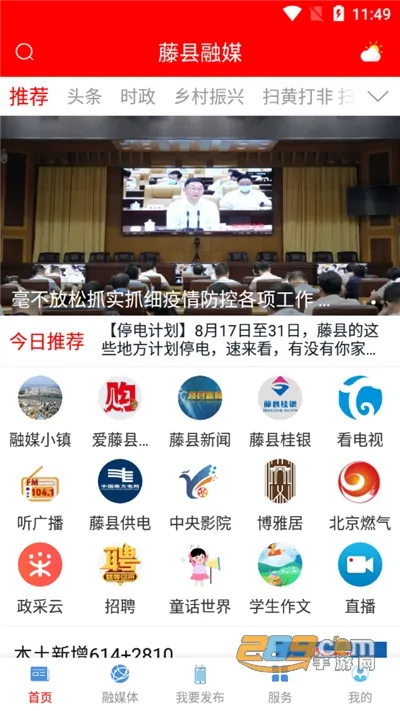 藤县融媒app由中共藤县县委宣传部主办、藤县融媒体中心运营。提供藤县本地政务民生新闻等,有新闻资讯浏览、广播电视播放等功能,还能在线办业务,是无线领域主流平台。