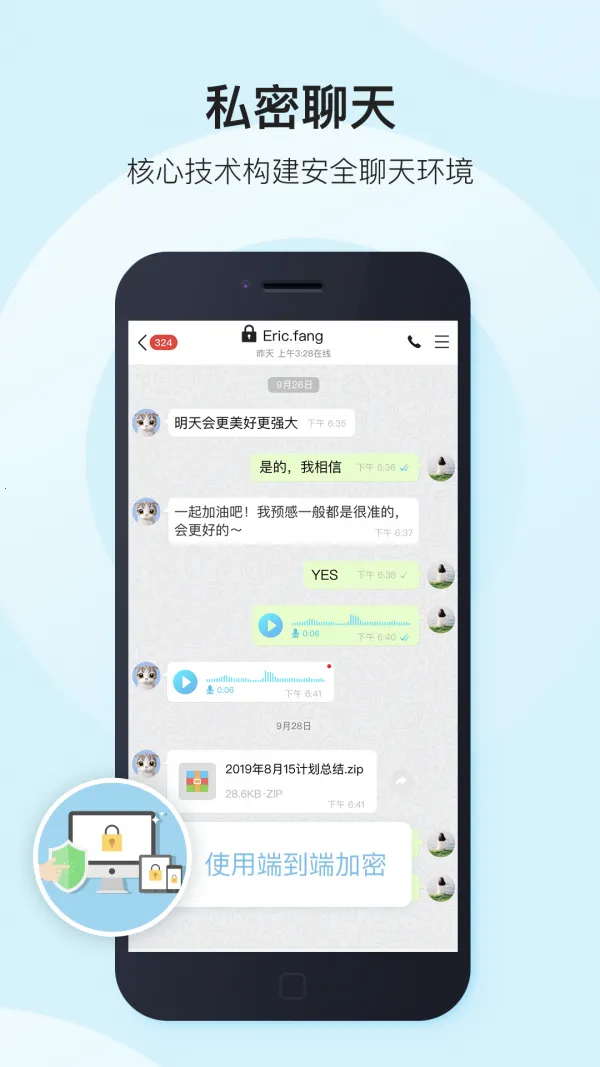 它功能强大,像群聊创建、发送文件、加密模式、一键式私人电话等一应俱全。