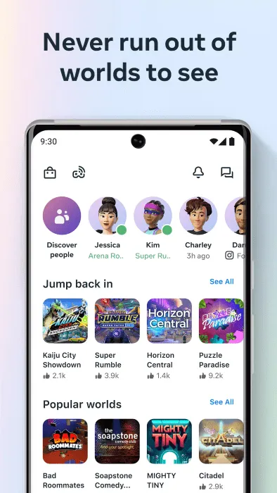 2. 它整合了虚拟形象定制、3D创作工具等功能,用户可通过多种设备创建个性化虚拟空间,与好友互动。
