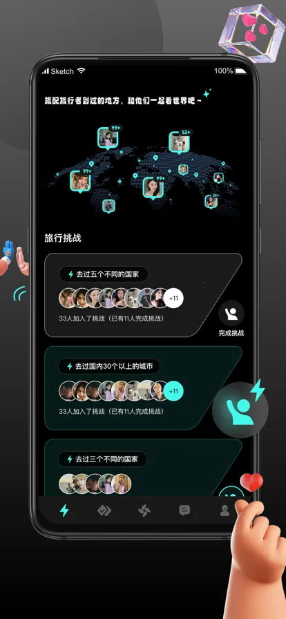 它的功能超丰富。能发布结伴邀约,基于你的个人信息、兴趣爱好和出行目的,通过智能匹配系统推荐合适旅伴。还有旅行动态社区,支持图文发布与话题标签,能随手记录旅途瞬间。能围绕地点、时间、玩法发起邀约,信息清晰,匹配高效。兴趣标签筛选方便快捷,能快速找到同好。个人主页可展示头像、资料、相册内容与旅行足迹。