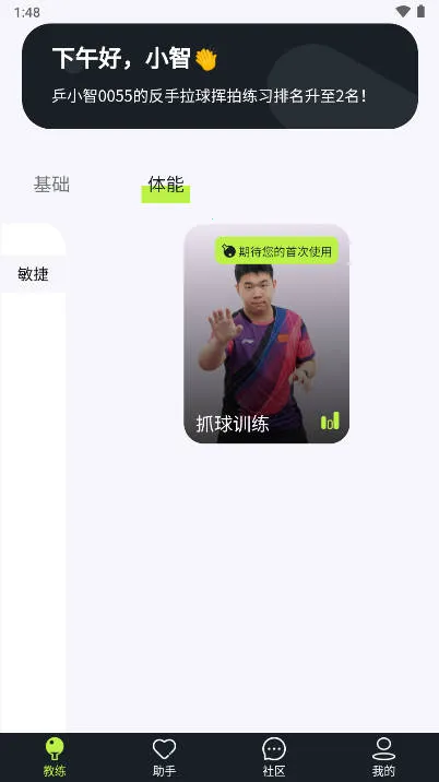 想免费使用乒小智来提升乒乓球水平吗?它超棒的!有海量乒乓球训练教程,能帮你掌握正确动作要点,哪怕是新手也能快速进步。这里功能多多,比如能进行乒乓球训练,观看各种动作教程了解要领,查看训练数据知晓训练情况,还能在社区和球友交流分享经验。它的特色很突出,通过手机摄像头捕捉挥拍动作,与顶级运动员标准比对,实时指出偏差并给纠正建议;提供多种步法训练方案,提升步法灵活性;解析顶级运动员得分技巧,让你快速掌握实用招;根据用户特点推送针对性训练内容,全面提升竞技能力。而且数据和模型源自专业运动员,专业权威值得信赖。按照软件指导就能开启科学训练,免费使用它,让你在乒乓球训练上更轻松、更高效,快来体验吧!