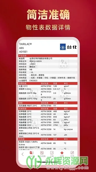 它功能超强大,有强大的精准搜索能力,输入性能信息就能快速匹配筛选出符合条件的材料。能在同一页面实时展示不同产品的牌号与对应性能参数,方便对比。还提供本地缓存功能,无网络时也能查阅材料说明书等。支持多种性能指标组合搜索,能快速找到理想材料。内置采购商城,商品均由原厂或正规代理商直销。汇聚全球众多知名化工厂的物性数据,覆盖多种材料类型和牌号。有针对性的性能搜索选项,还有独特计算功能,能为材料改性配方设计提供依据。能实时获取全球化工行业进展,助力产品研发。更新日志显示其不断优化,修复问题,提升体验,真的很实用,赶紧下载试试吧!