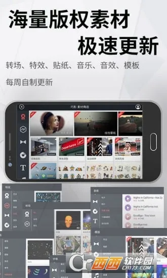 2. 素材丰富多样,超千种热门素材随意用,每周更新特效,提升视频质量。