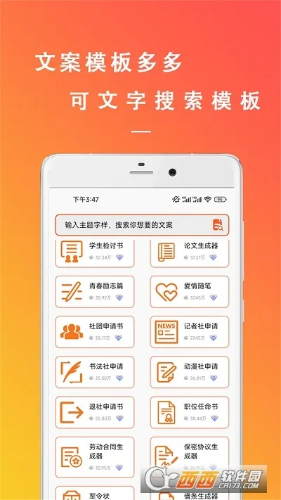 万能文案精灵是一款超棒的写文案软件。它能帮你轻松搞定各种文案创作。你只要输入文案主题,再填点相关事儿,就能一键生成文章。生成的文章能随意编辑修改,稍微调整下就能保存用,还能分享给别人。它有手写功能,让文章更有质感。软件模板丰富多样,有数百种行业专属模板,分类清晰,能按需挑选直接套用。风格还能自由切换,专业、幽默、温情、口语化等多种风格任你选。语音输入也很便捷,通过口述就能快速开启创作。它能自动保存生成内容记录,方便分类管理与二次编辑。还有伪原创写作功能,复制粘贴内容,能智能识别关键词并换同义词。违禁词查询功能可避免违规,朋友圈防折叠功能让文案完整展示。有了它,写文案变得轻松又高效,快来试试吧!