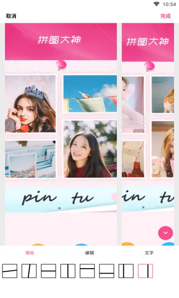 拼图大神安卓版是功能全面的拼图工具,有强大拼图体系与海量模板,适配不同需求场景。支持多种拼图模式,能精准搜索模板,还可自由调整图片,一键保存,导出高清无损,多机型适配,格式灵活。