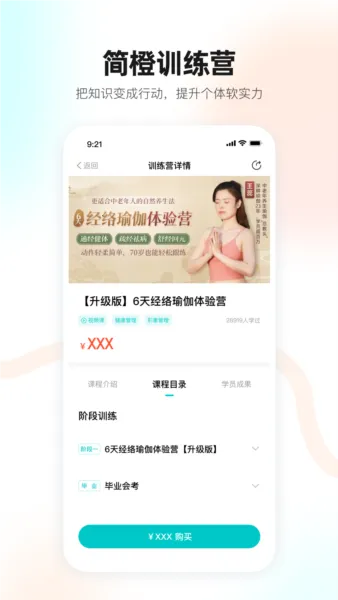 简橙app是广州简知教育科技有限公司开发的知识学习平台,是正规的。它能满足你在瑜伽、书法、国画等领域的学习需求。这里课程丰富,有瑜伽、健康、中医等多种类型,不管你是青年还是乐龄人士都适合。软件特色多多,提供知识分享,用户能以文字、图片、视频等形式分享各领域知识;有丰富学习资源,包括文章、教程、课程、书籍等,可按需查找;能个性化推荐符合兴趣和学习历史的内容;支持社区互动,可交流讨论、分享观点、解答疑惑;还有收藏和关注功能,以及强大搜索功能。它致力于打造开放共享的学习社区,帮你获取知识、分享经验、提升能力。在这里,你能跟着专业导师学习,通过多种元素自由选择适合自己的方式高效学习,还能参与节日活动实惠购课。快来下载简橙app开启学习之旅吧!