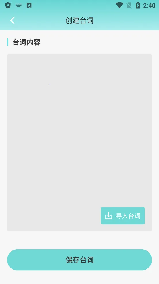 1、打开软件后点击新建脚本,可以直接输入台词内容,也可以从手机里导入已有的文本文件,方便快速加载需要朗读的文稿。