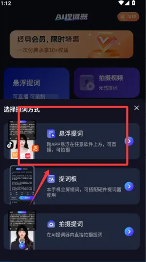 2. 具备悬浮提词功能,可边播边看台词,一键开启各大短视频平台轻松实现提词,提高拍摄效率。