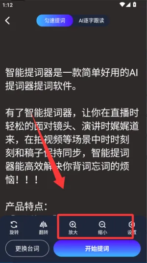2、功能全面,能帮助用户在直播、拍视频等场景中与稿子保持同步,高效解决背词忘词烦恼。