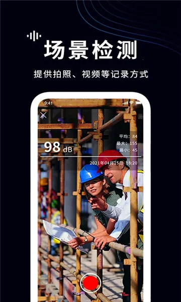 2. 具备拍照取证功能,遇到噪音扰民时,可边录音边拍照,声音数据和图片自动关联保存,为投诉提供有力证据。