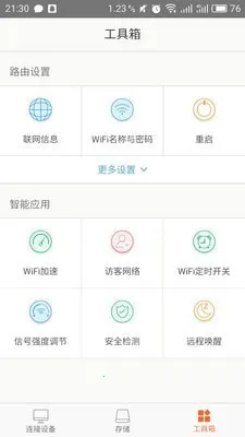 腾达路由器app由深圳市吉祥腾达科技有限公司研发,支持本地与远程管理。可控制路由器、防蹭网、管理设备、加速WIFI等,还能进行安全检测,暂支持管理特定型号路由器。