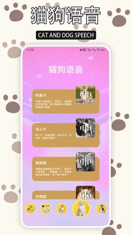 3. 该软件支持常见宠物类型,提供个性化翻译服务,还有各种宠物养护知识、饮食建议及健康管理技巧,满足不同爱好者需求。