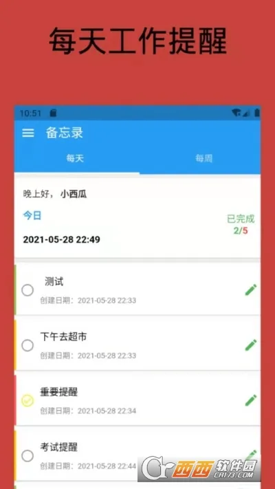 3. 支持自定义排序,打开是每日记录提醒和每周记录列表,使用起来十分便捷。