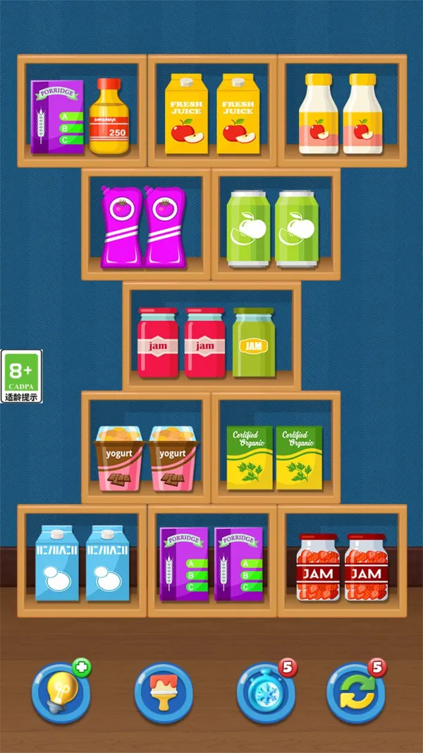 清理货柜是一款轻松易上手的消除类休闲手游。以货柜货架为场景,移动商品使三个相同物品同格消除闯关。玩法简单却考验观察力与规划力,关卡循序渐进,解压又烧脑,适合碎片时间放松。