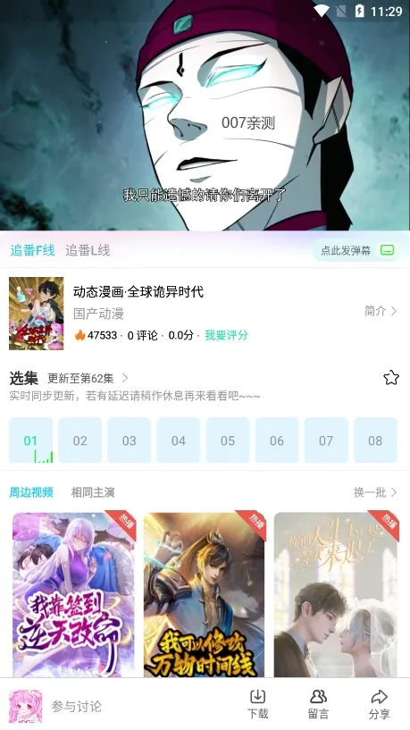 3. 支持多种互动方式,可在评论区和弹幕互动,分享追番体验,还能将喜欢的动漫作品下载到本地。