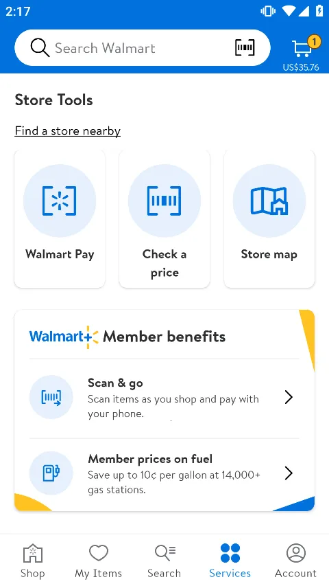 4、还能在“services”里面看到一些专属于沃尔玛的专属服务,扫码等。