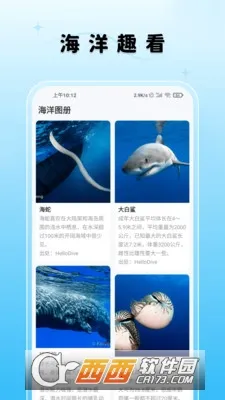 2. 图鉴库丰富,可切换分类查看3000种海洋生物的高清影像与权威物种档案,全面了解海洋生物。