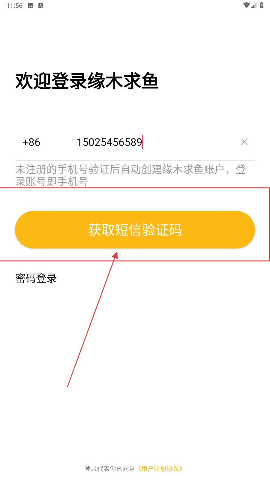 1、打开应用,填写手机号。