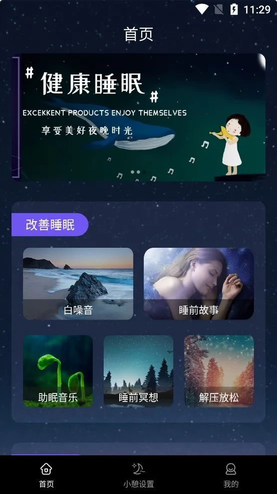1. 精选助眠音频资源,包含改善睡眠的音乐、白噪音、睡前故事等,帮助用户更好入睡。