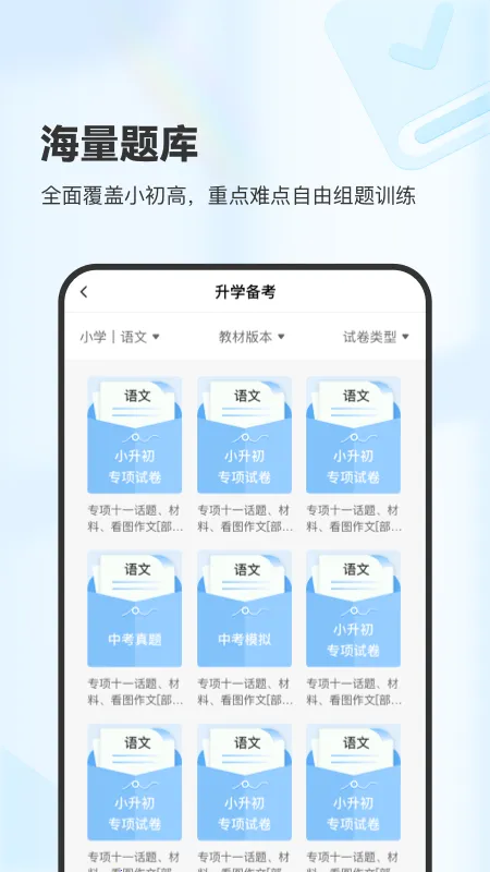 2. 海量题库资源丰富,覆盖全学段,重点难点可自由组合,定制专属练习册。
