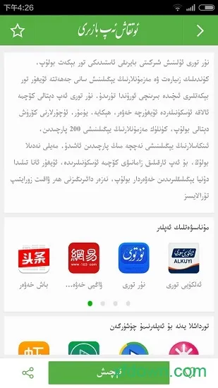 otkax 是一款专为吾尔族用户打造的手机应用商店,里面有海量应用,涵盖了应用宝、华为、豌豆荚等应用市场的软件,解决了吾尔族人下载应用不方便的问题。它使用维语,方便汉语水平不好的维族朋友。