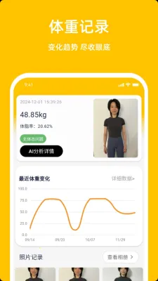 1. 记录方式简单,通过拍照打卡就能轻松记录每日体重。