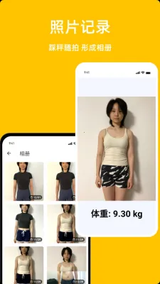 体重相册是一款自由记录体重的app,能记录每日体重、饮食、卡路里摄入,通过bmi计算数据。有体脂分析等功能,采用简单拍照记录,智能推荐,还有历史回看,助你管理身材与健康。