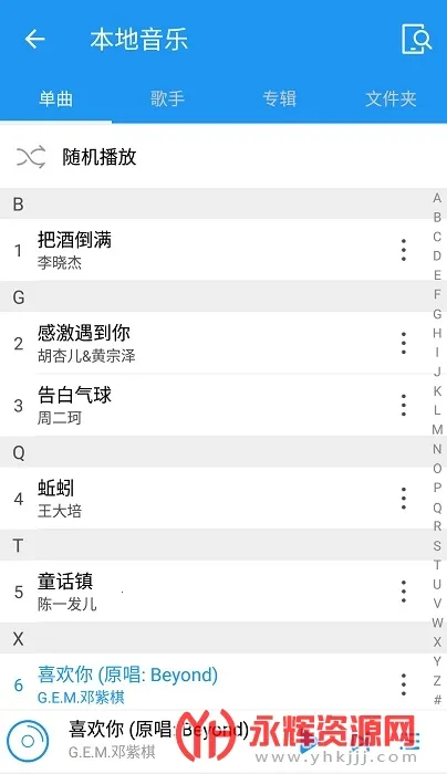 1. 操作便捷体积小巧,还能智能扫描设备音乐资源并自动归类,找歌不烦恼。