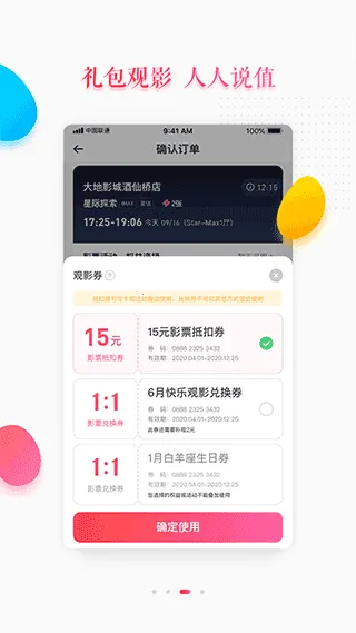 购票功能超给力,足不出户就能轻松预订电影票,同时还设有看电影必备零食的购买通道。