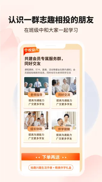 1. 课程内容针对中老年群体认知特点设计,教学节奏舒缓,讲师多为同龄专家,采用方言教学,降低学习压力。
