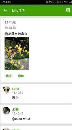 2. 日记可设为公开、仅好友可见或私密,也可浏览他人公开日记,参与话题讨论等,实现匿名社交。