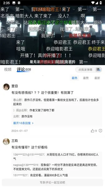 3. 支持对动漫番剧评论,追番时能自由发弹幕互动。