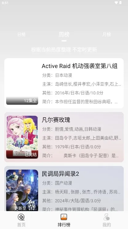 3. 追番列表:一周详细番组表,天天煲动画不停。