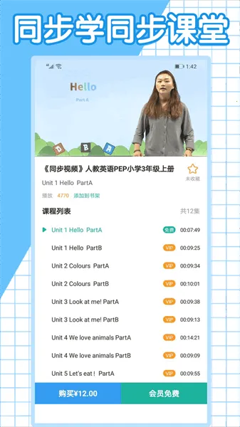 小学英语同步学堂2024最新版是专为小孩打造的英语学习工具,与小学教材同步,有视频辅助理解,可自由添加课表预习。能点单词听读音,有多种资源,课程免费,助孩子校内外巩固知识。