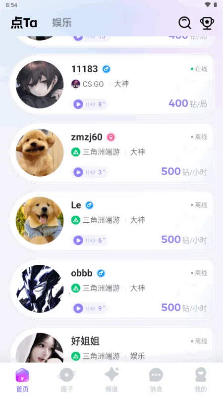 1. 这里是专属陪伴空间,能轻松找专业电竞或娱乐陪玩搭子,热门游戏组队开黑超尽兴。