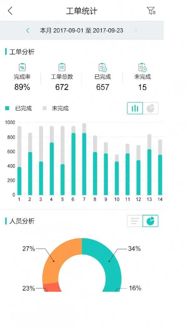能通过数据分析对工单进行统计,查看工单状态。