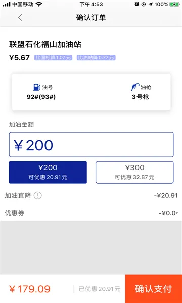 4. 能在线支付油费,方便快捷还安全,同时提供高折扣优惠,加油超省钱。