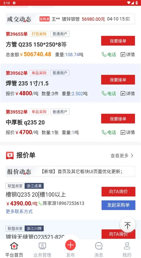 4. 设有交流功能,可与其他钢贸企业交流,了解行业动态、分享经验、找合作伙伴。