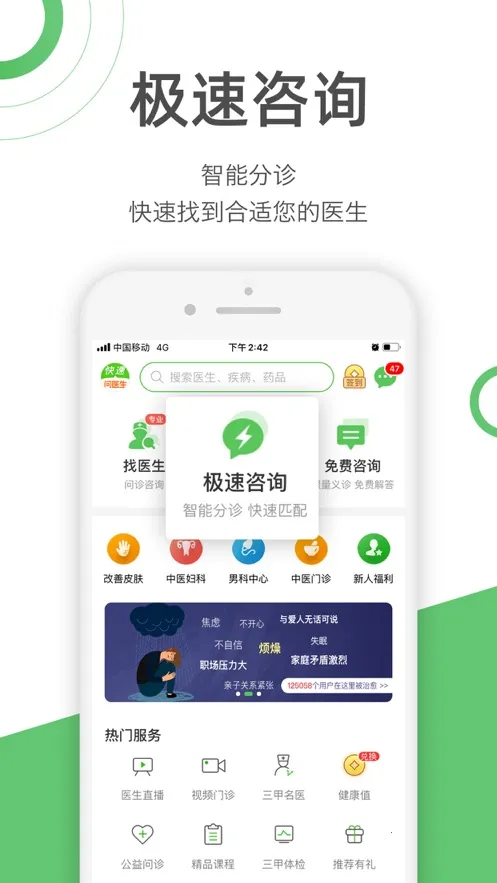 快速问医生是一款移动医疗应用,提供三甲主任医师一对一在线咨询,724小时服务。涵盖多种医疗服务,有疾病资料库,支持多种咨询方式,整合多医疗资源,方便用户快速解决健康问题。