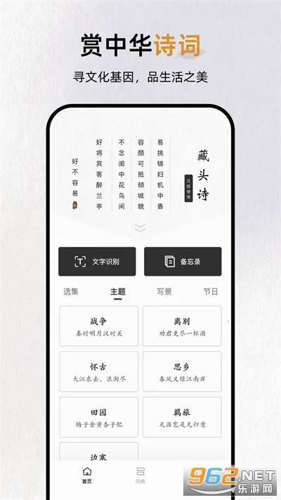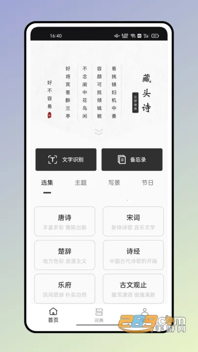 它能解决学习中的诸多问题,比如查询各种词汇、进行语言翻译。支持多种语言,包括英语、日语、韩语等。还能帮你学习古诗词,有唐诗宋词元曲等经典之作,围绕诗词有各种分类,方便你按兴趣学习。能通过拍照查询古诗词原句与出处,自定义学习目标。制作藏头诗也很有趣,可选择格式、主题等。总之,无论是语言学习还是诗词探究,反向词典都能为你提供便利,快来下载体验吧!