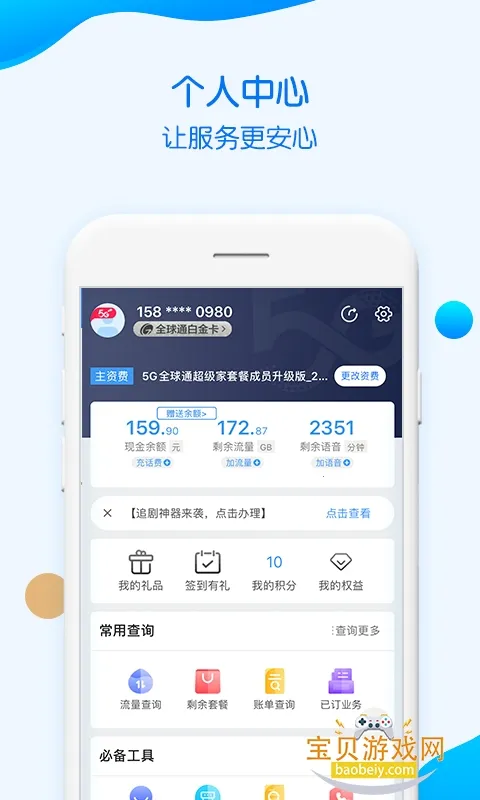 4. 涵盖多种特色服务,如查公交、5G 专区等,还有新人福利、优惠活动等,为用户带来全方位便捷的移动服务体验。