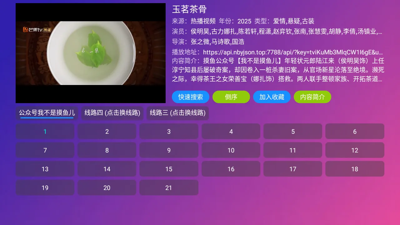 3. 点击电视剧封面,能了解详情,包含主角演员表和简介。