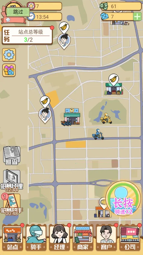 1. 有着个性化骑手养成机制,可招募不同技能属性员工,提升团队实力。