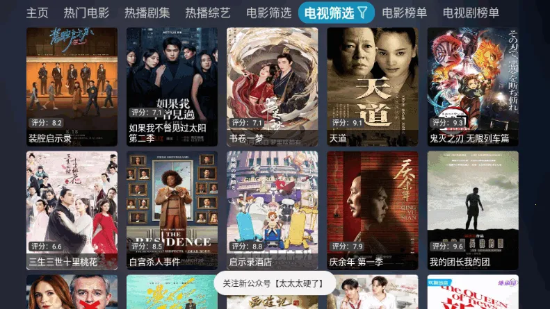 支持TV端和移动端双适配,还能手机投屏至TV,切换家庭影院模式,观影更震撼。