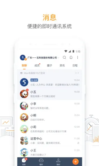 另外,它的标签功能方便任务分类管理,任务筛选能快速定位相关事务。组织模块涵盖事务、文件、社区、人脉、招聘、考勤记录等功能,全方位提升管理效率。消息模块包含我聊、成员圈子、资讯等,提供即时沟通工具和知识库。有了115管理app,管理变得更简单高效啦!