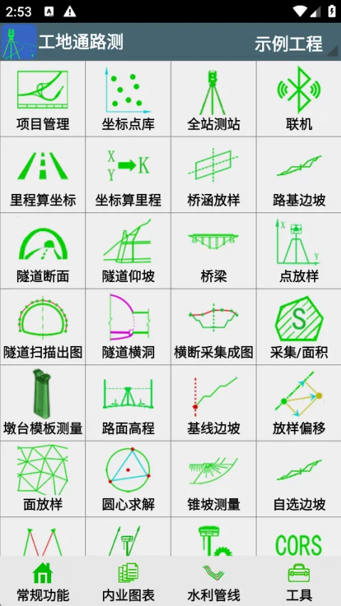 1. 功能强大且全面,涵盖路线坐标高程计算、放样、坐标里程反算等多种测量计算功能,适配复杂工程场景,满足公路铁路市政等施工测量需求。