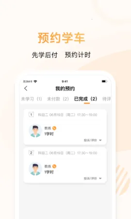 1. 能提前预约教练,精准安排学车时间,让学习更有序。