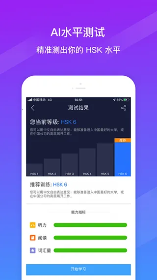 SuperTest v9压力机数据库密码相关软件能帮你解决HSK备考难题。它有海量题库,按HSK级别分类,涵盖300,000道练习题、历年真题及模拟考试,支持听力、阅读、写作专项训练,让你熟悉考试题型和难度。智能分析功能基于答题数据生成报告,动态调整学习计划,精准匹配你的需求。跨平台同步可在iOS、Android、Web多端无缝衔接学习进度,社区互动能让你分享经验、参与讨论。其权威内容体系严格遵循大纲,涵盖高频词汇及核心语法。AI自适应学习实现千人千面个性化学习,会员享受无广告纯净环境。每道题有详细解析,错误即时纠正强化。无论你是初学者还是冲刺阶段,它都能全方位助力,让你高效掌握考试要点,顺利通过HSK考试。