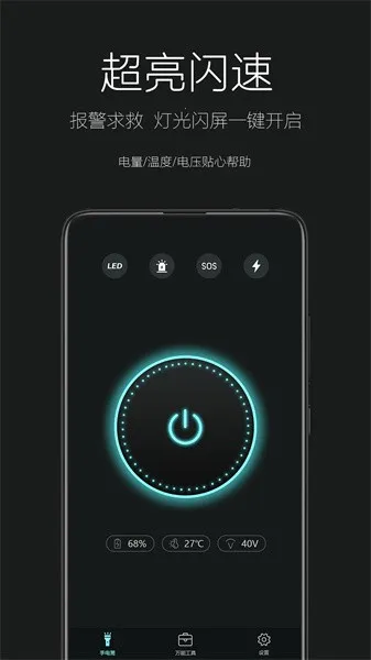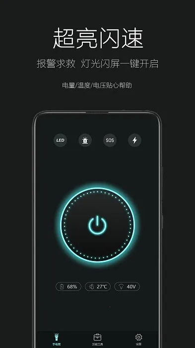 天天手电筒2026是便捷手机工具软件,设计简洁免费绿色,能秒开超亮手电筒,新增SOS功能,还有多种灯光及实用小工具,操作简便、省电省内存,手机兼容性好。